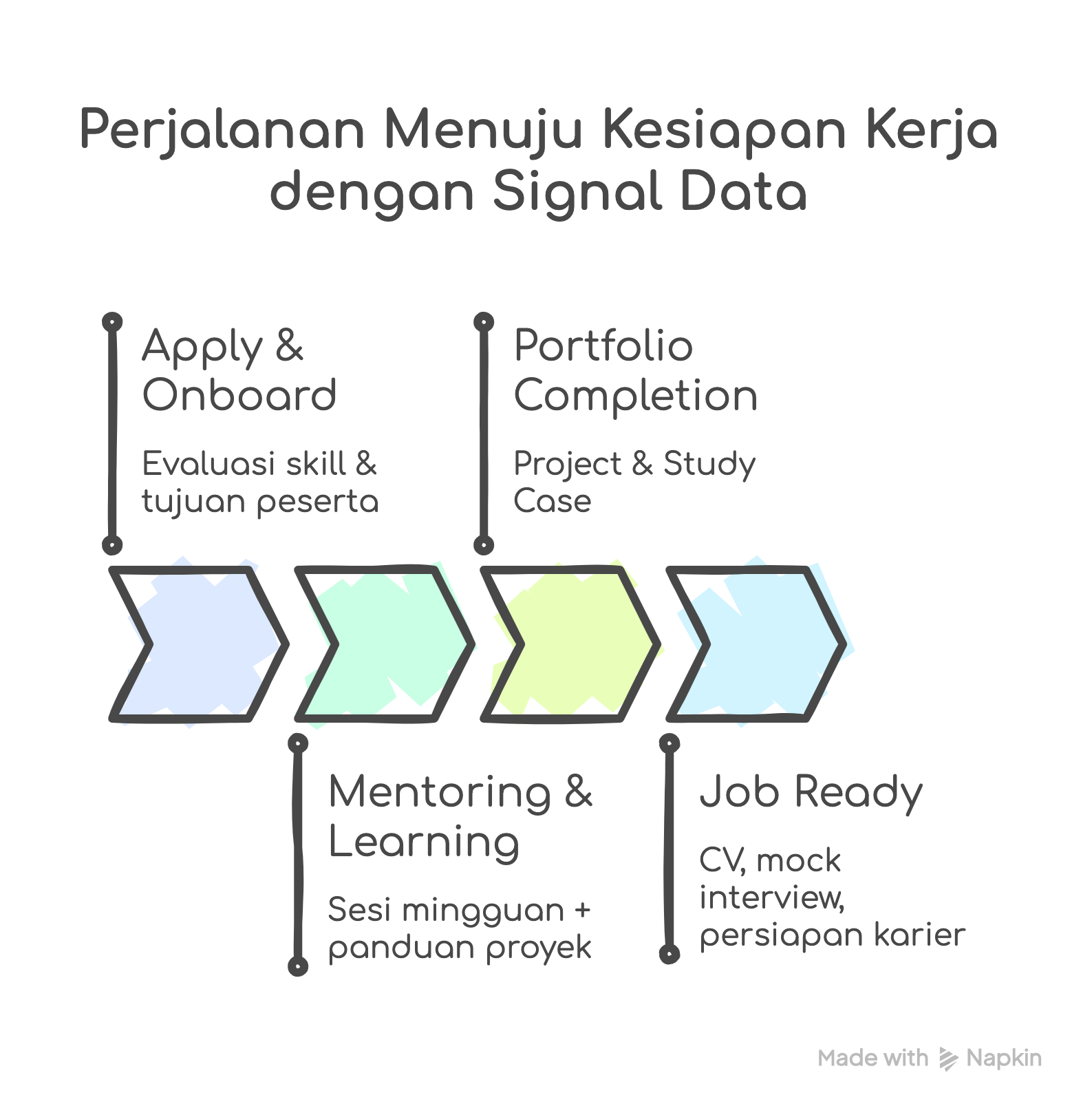 Selain itu, Anda juga dapat bergabung dalam Live Code Session, sebuah kolaborasi project-based learning bersama komunitas Signal Data untuk membangun portfolio data Anda.
