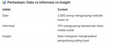 Insight itu seperti “lampu yang menyala” di kepala saat kita memahami pola, hubungan, atau sebab-akibat dari data.